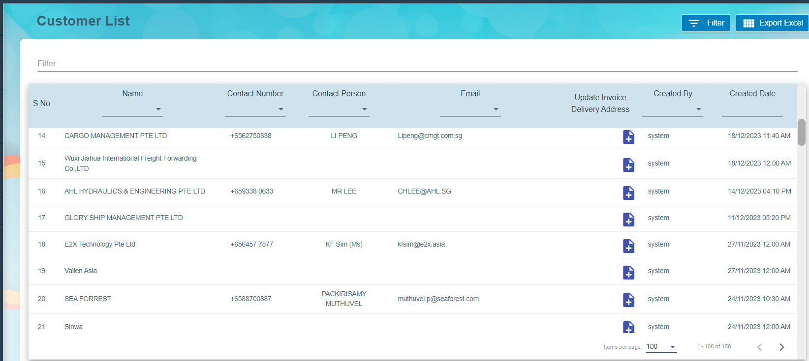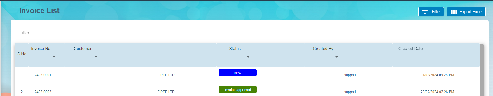 To view Customer list, Click Customer submenu in the Master, the customer list page opens as below.
