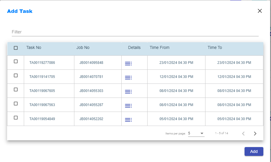- New window open to choose the task numbers.