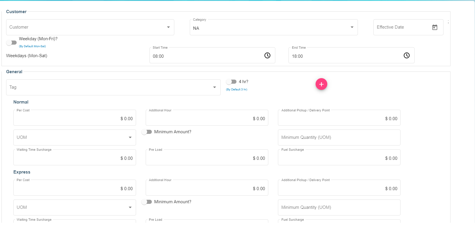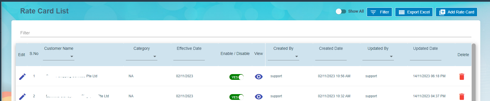 - Click rate card to add all the activities details against the customer.