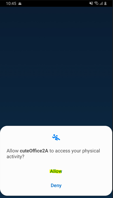 Next the App will ask you for permissions to access location on your device, click Allow all the time.