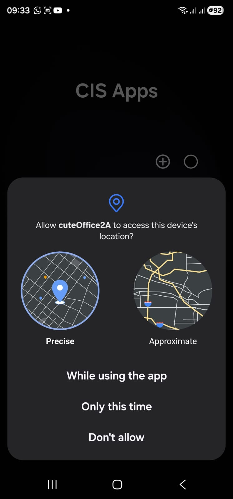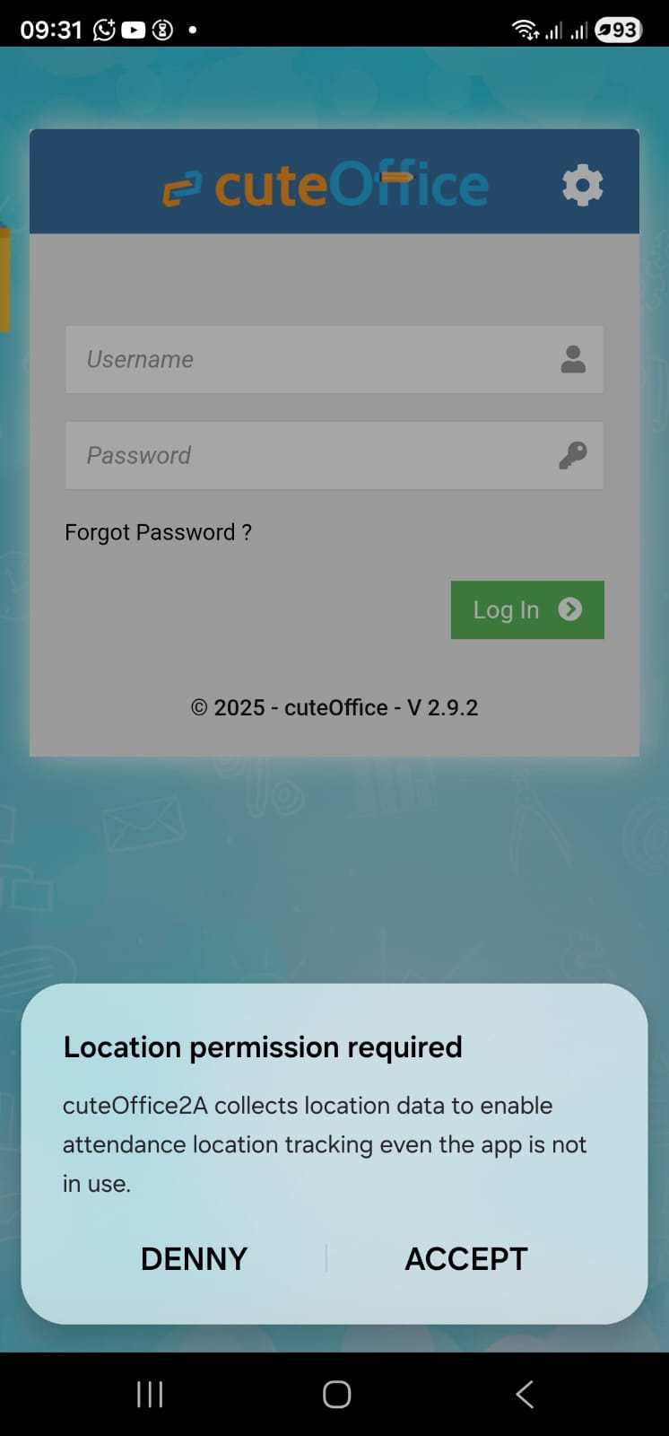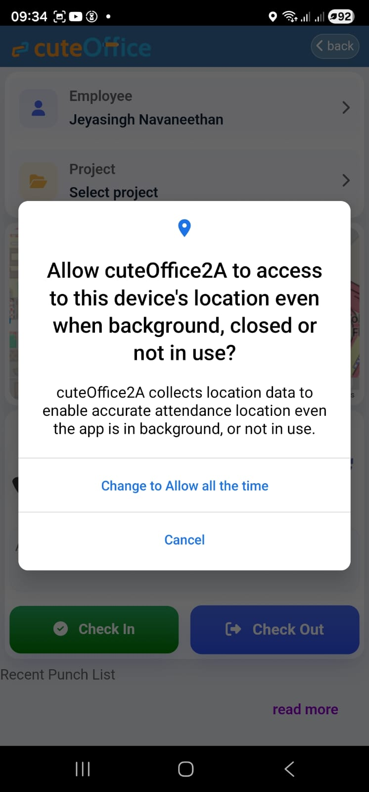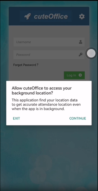 When opening the app for the first time, click continue at this background location prompt. If you click Exit then the app will be closed. The application needs to capture the location for attendance purposes.