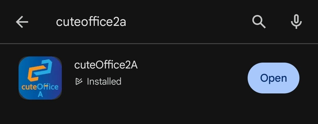Install the App cuteOffice2A by searching cuteOffice2A and install the App.