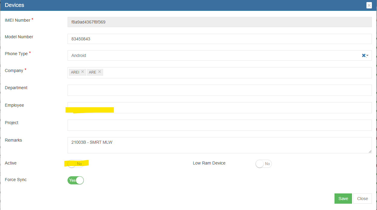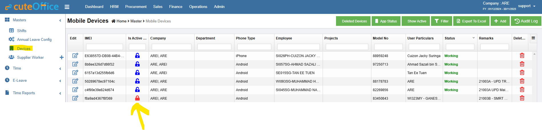 The device that are on Red color locked ones are not activated yet. The user particulars has the details entered by the user when registering such as their name/employee number etc.