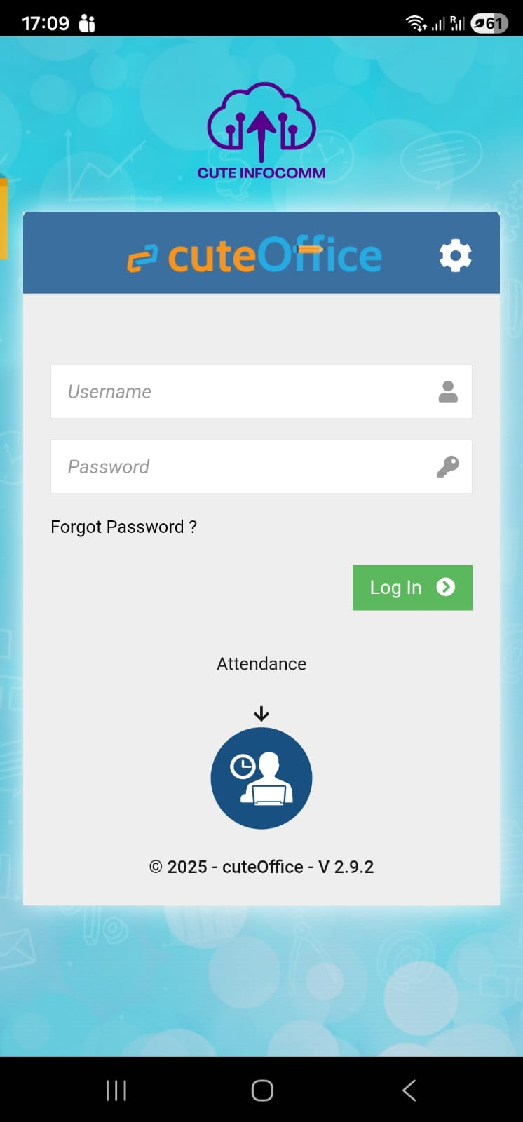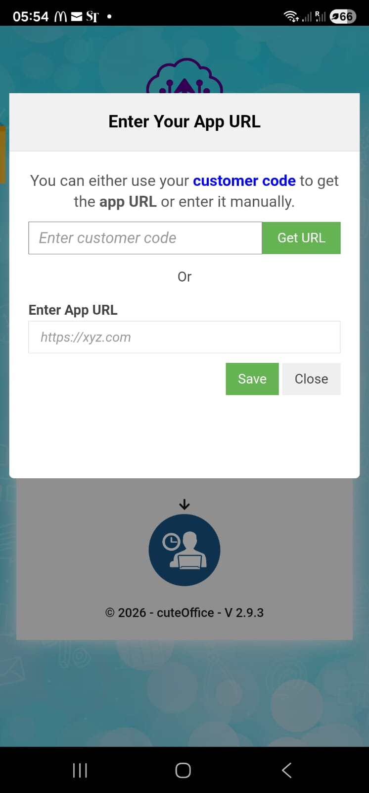 Otherwise enter https://***.cuteoffice.net (Get the correct URL from your cuteOffice administrator or HR)