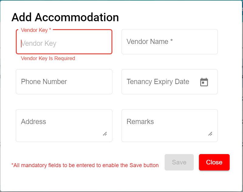 4. In the Tenancy Expiry Date field, enter this tenancy expiry date of this dormitory vendor record.