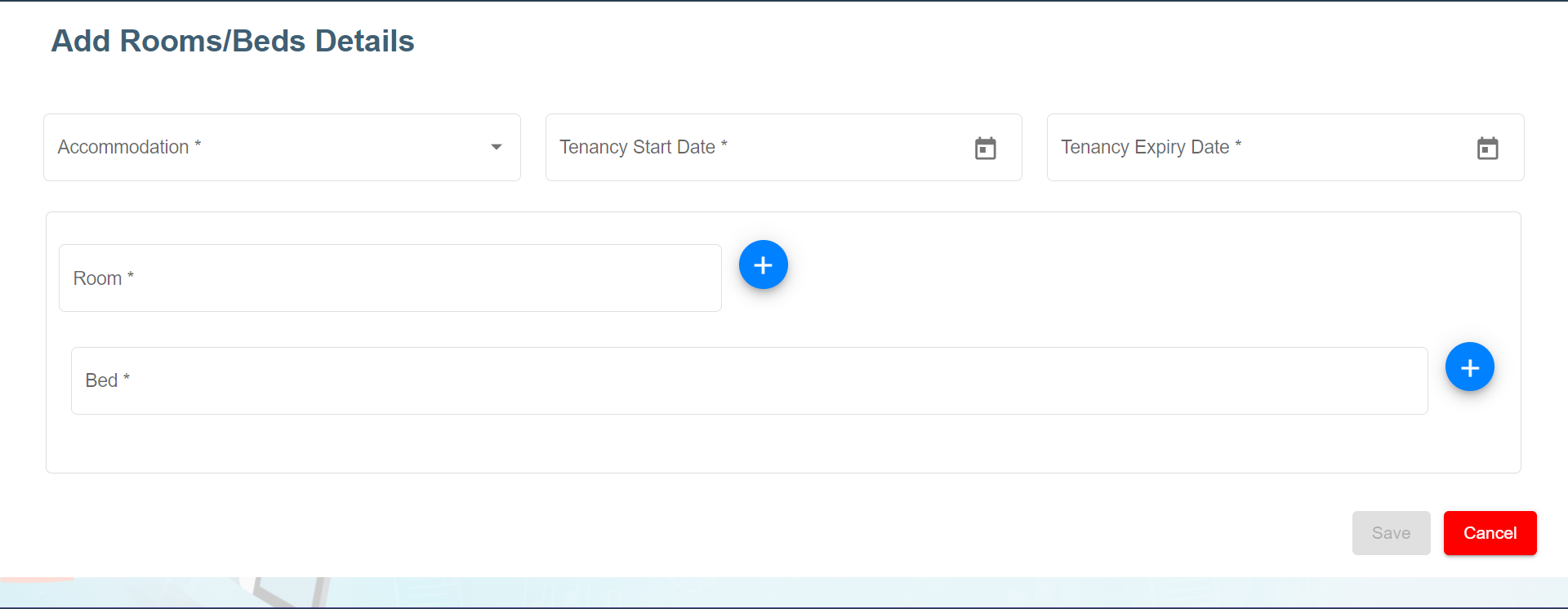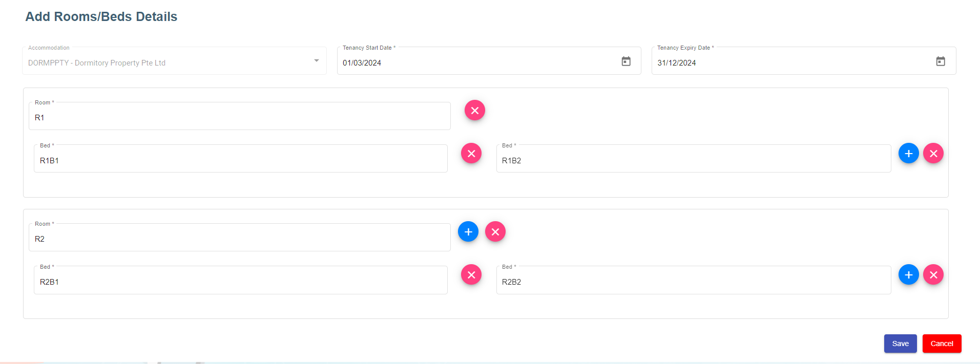 5. In the Bed field, input the bed no. e.g. R1B1. If more beds needs to be added, click on the