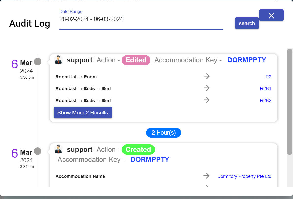 You can edit the details of the added accommodation record by using the edit option provided in the Edit column of the Accommodation page. Click