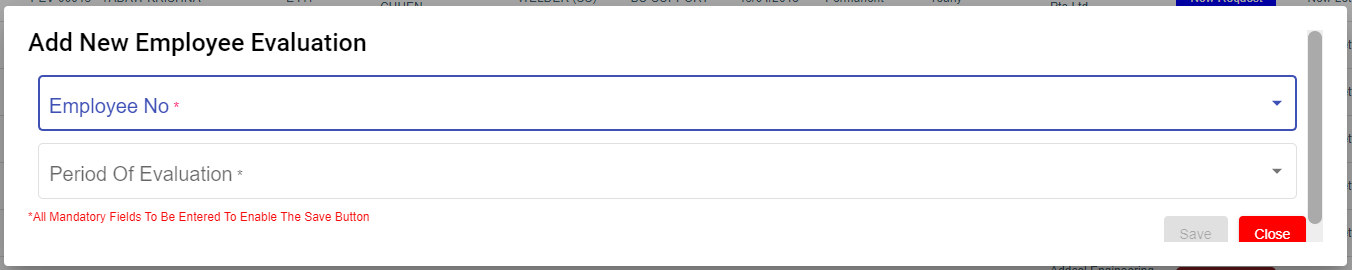 - Click Save. New evaluation requests will be created for selected employees. The add evaluation page will be redirect to evaluation list page.