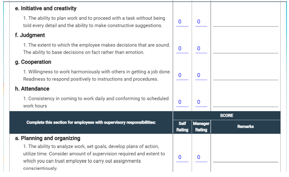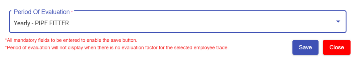 - Employee is required to enter the rating at the Self Rating column for each evaluation item. Employee is required to input remarks/comments so that the Save button is enabled to allow to proceed to save and send to supervisor for evaluation.