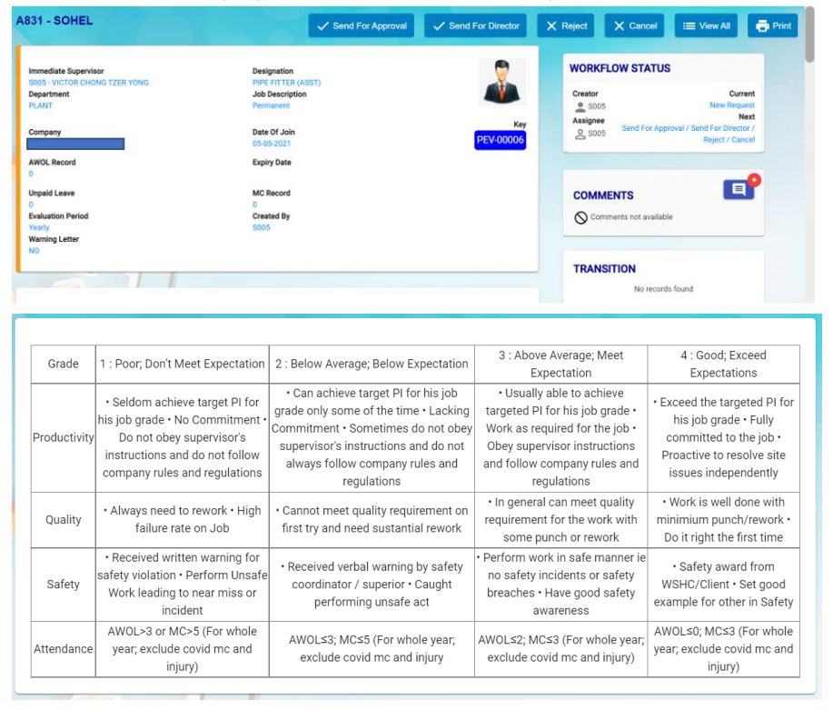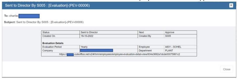 - The director can click on the url i.e. https://xxxx to access the employee evaluation. Below is the employee evaluation for his comments and approval,