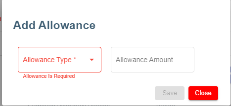 icon to add any allowance for the employee. Select the allowance type from the dropdown list and enter allowance amount.