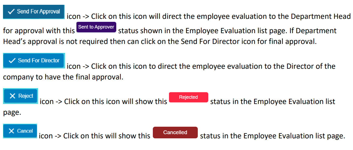 - Status of this employee evaluation will be changed to "Sent to Director" in the Employee Evaluation list page.