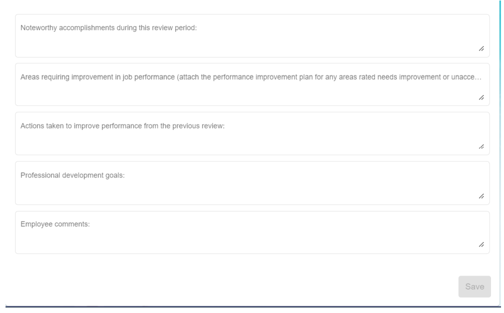 - In the email notification, employee needs to click on the url i.e. https://xxx to open his/her evaluation form to do evaluation. Below shows the evaluation form for employee to view and self appraise:
