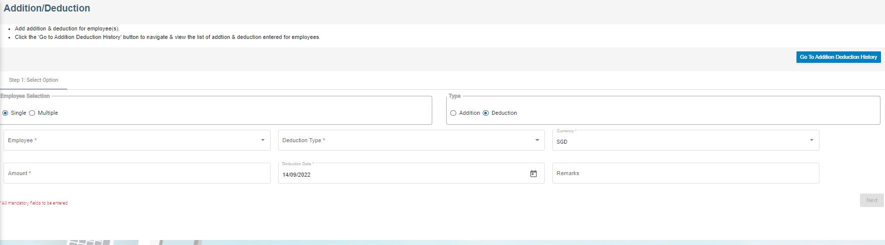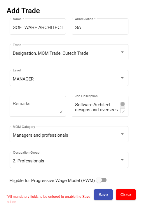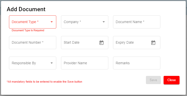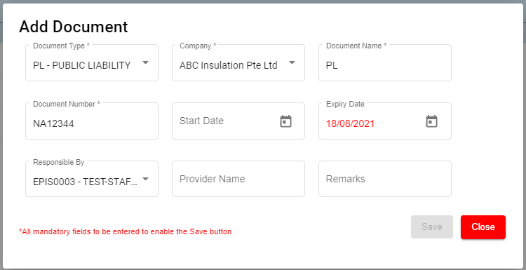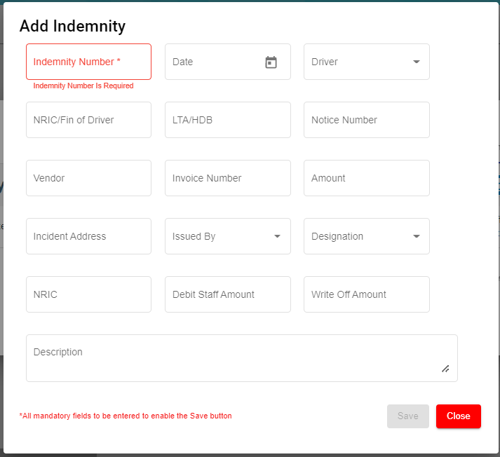 Note: The fields notified with a symbol (*) are mandatory. You must enter the relevant details in that fields before saving.