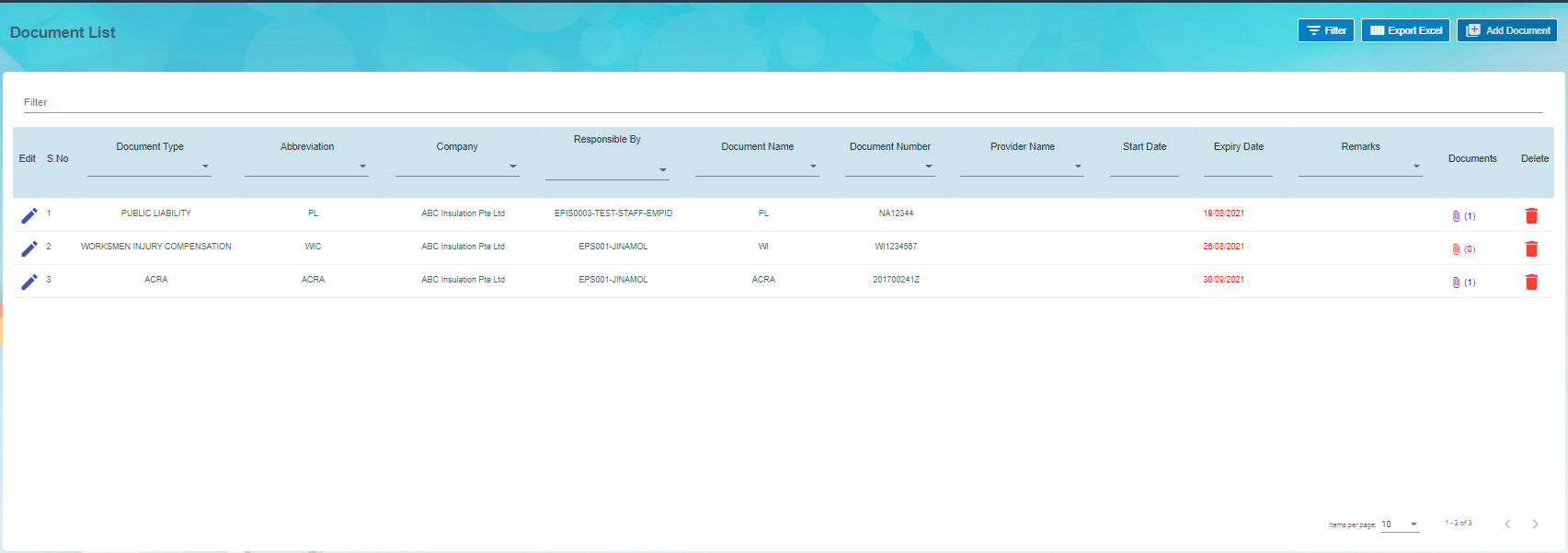 If you want to view any specific document details among multiple documents listed in the View Document page, you can use the filter option