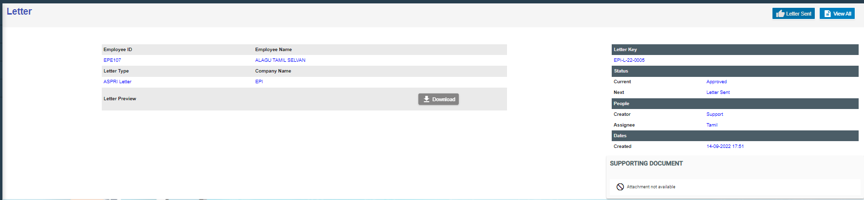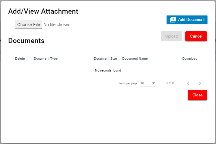 - Click Upload. The selected file will be uploaded and displayed in the Add/View Attachment window.
