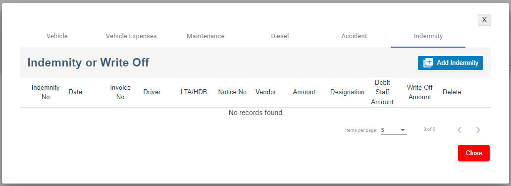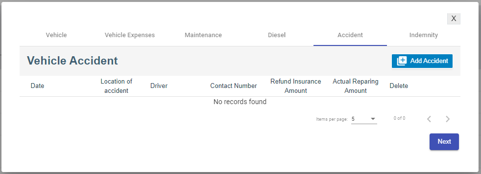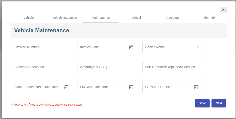 - Click Save, then click Next, the Vehicle Maintenance tab will open.