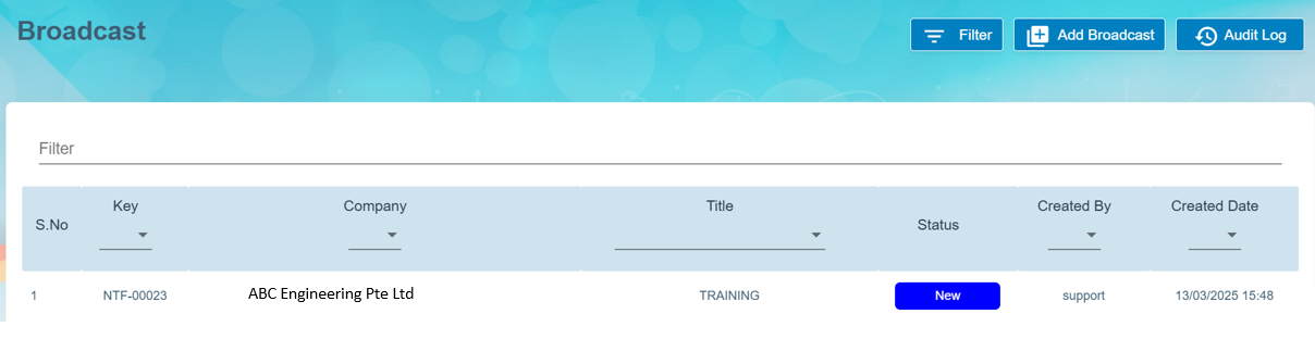 Once done and the mandatory fields (marked with *) are entered/selected, you will be able to see the Save button. Click on the Save button to record the broadcast message.