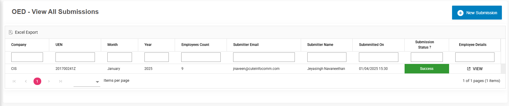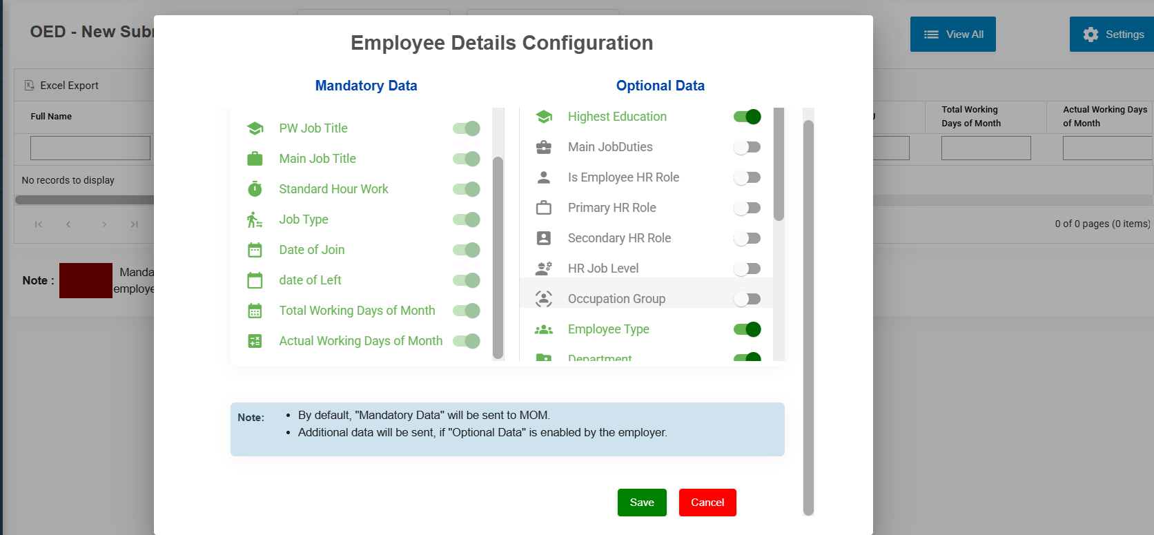 The Occupational Employment Dataset (OED) is an ongoing registry where organisations in Singapore are required to provide the job and work location details of all employees. The below URL is usually used to submit the OED data.