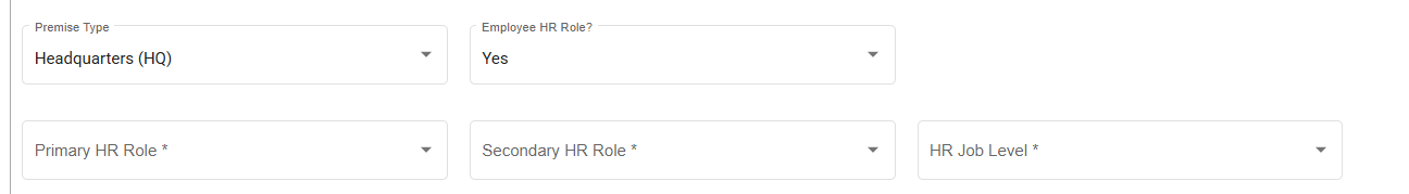 In official information page, select the place of working Premise Type and also update whether the employee is in HRM role or not.