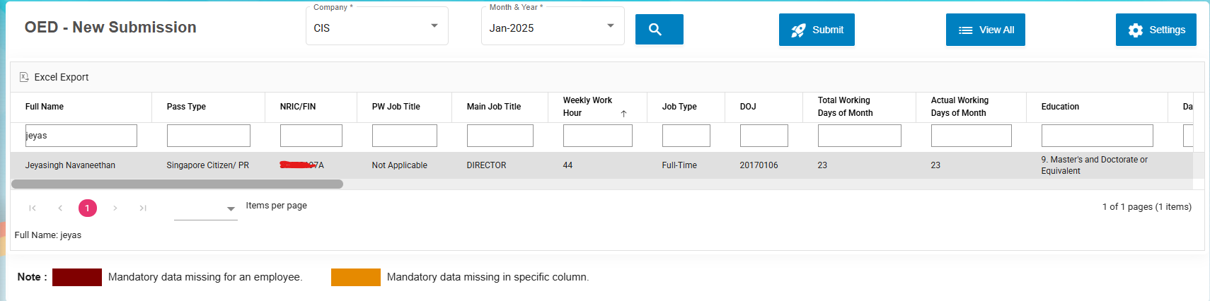 Note: Only after approving the timesheet, you can submit the OED data as worked day is part of the data to submit.