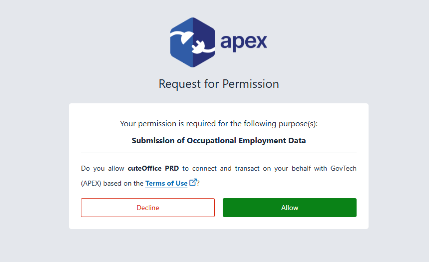 Once authorised and selected the correct company name, Click Allow for cuteOffice to submit the data on your behalf.
