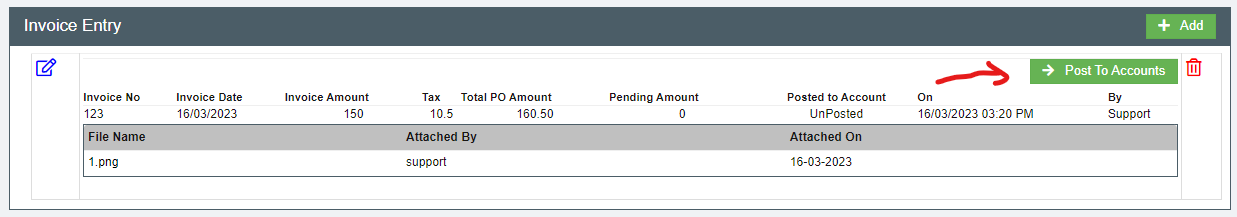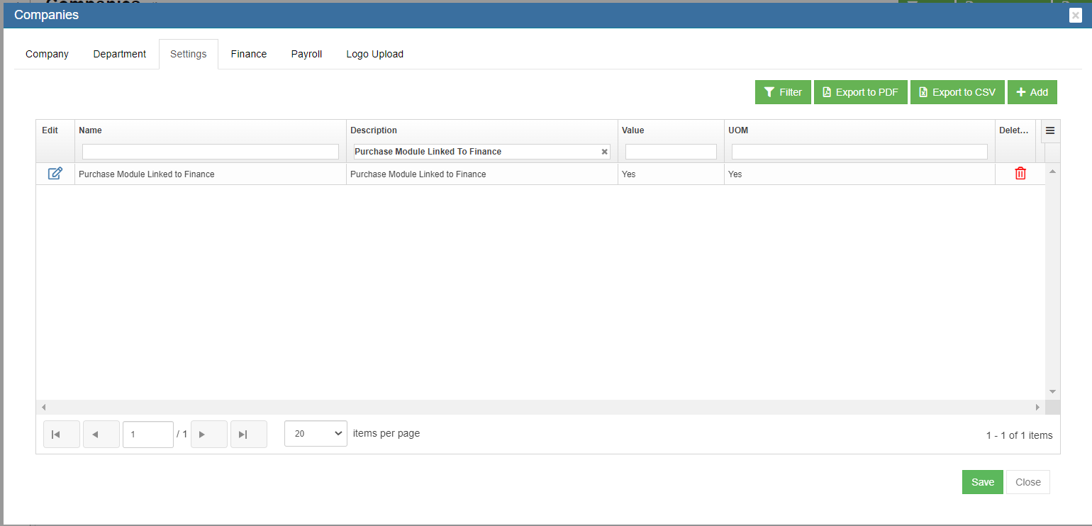 Note: Posting PO to finance function will be available only if setting configurations in Step 1 setting configuration name Purchase Module Linked To Finance is enabled as Yes at the company level.