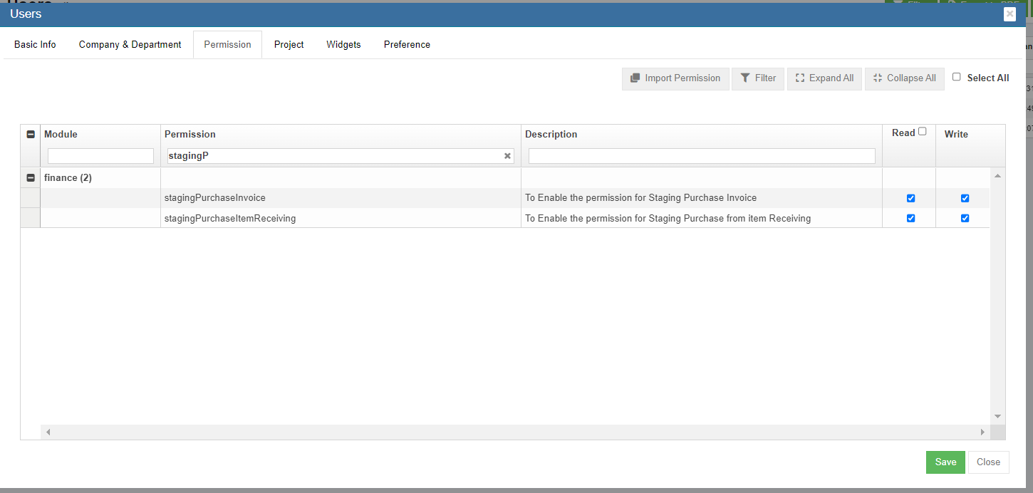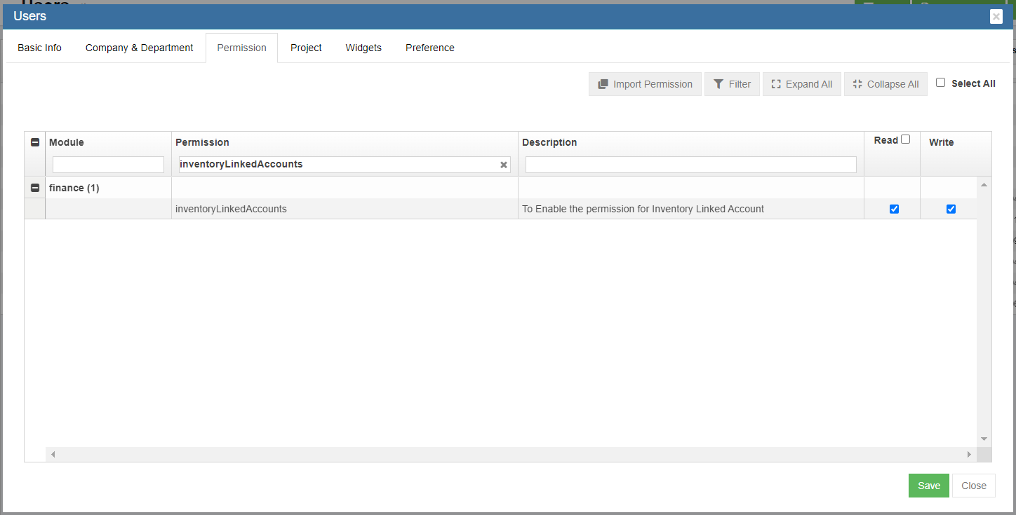 - Click Save. The new permission assigned to role "Finance Manager" will be granted to user.