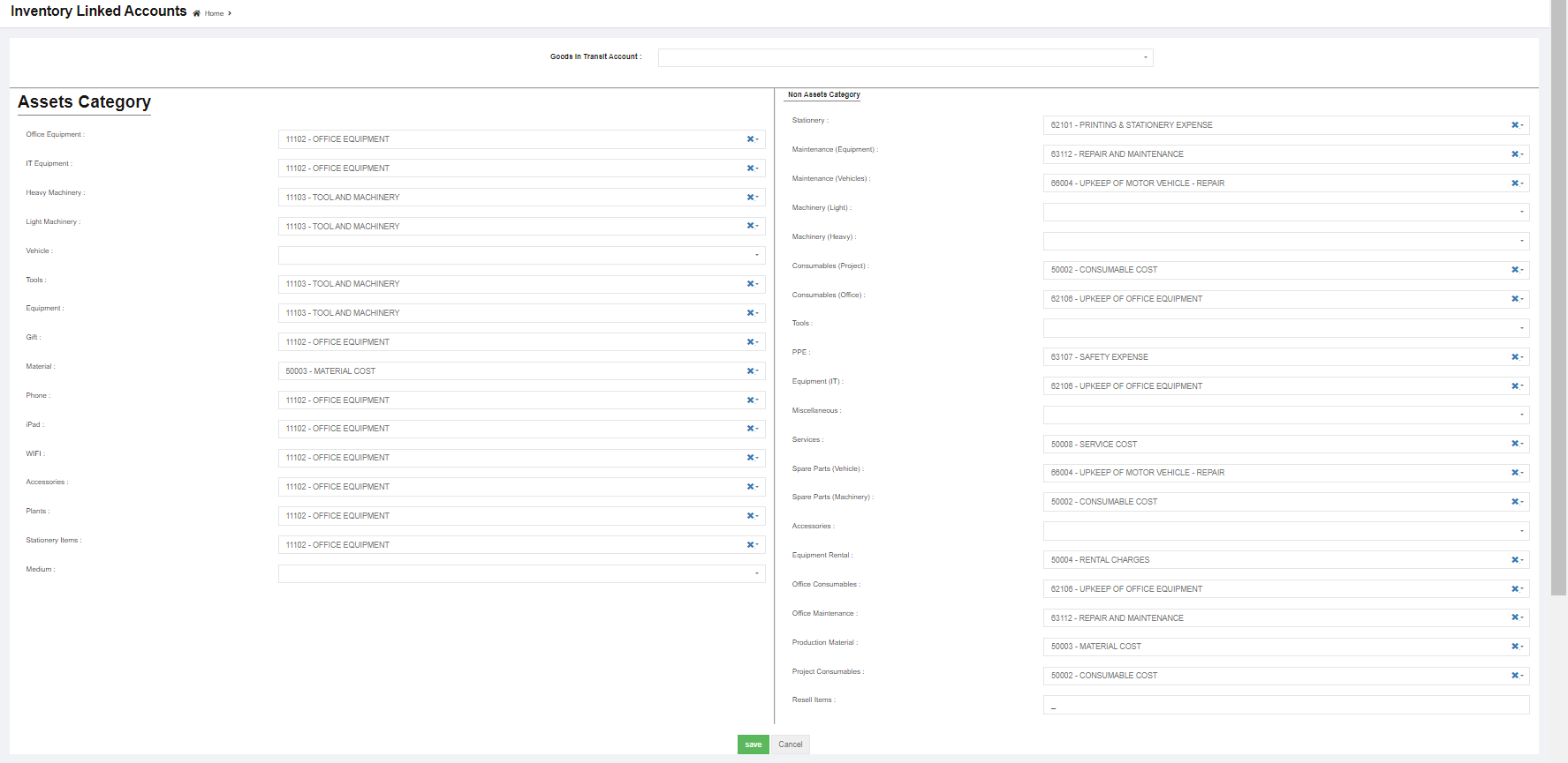 - Or if user want to map G/L account code, select relevant G/L account code in area 4.