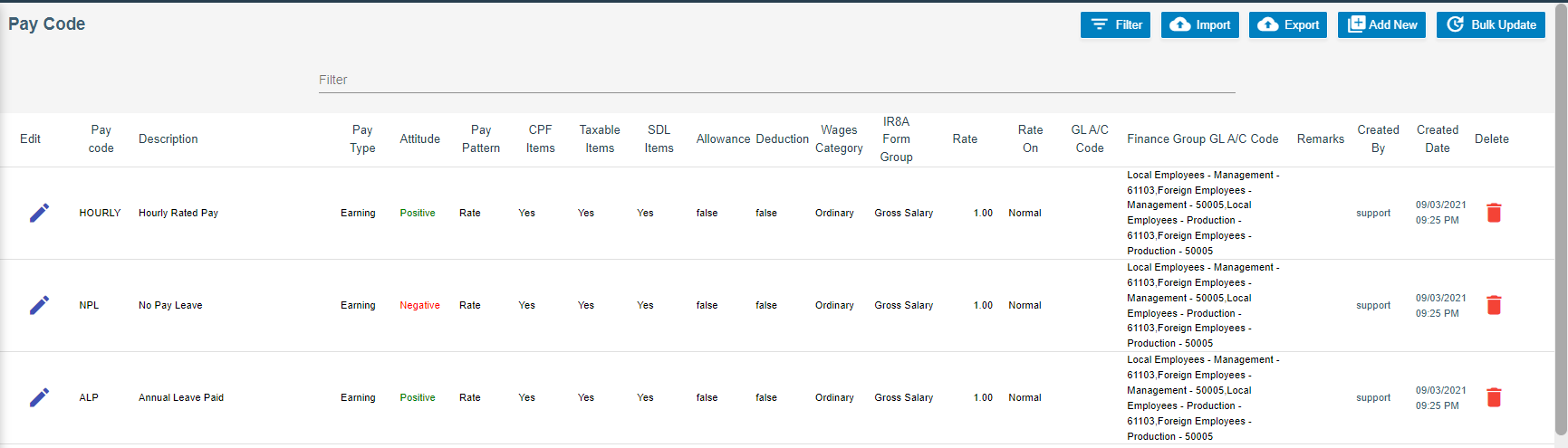 - Go to HRM-Payroll module, navigate to Master menu, click to open pay code master list.