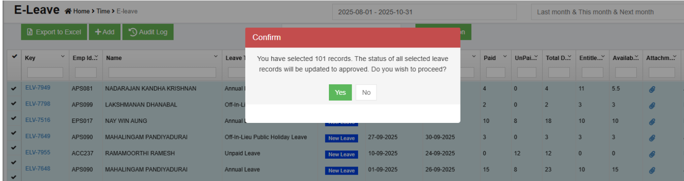 Bulk Leave Approval