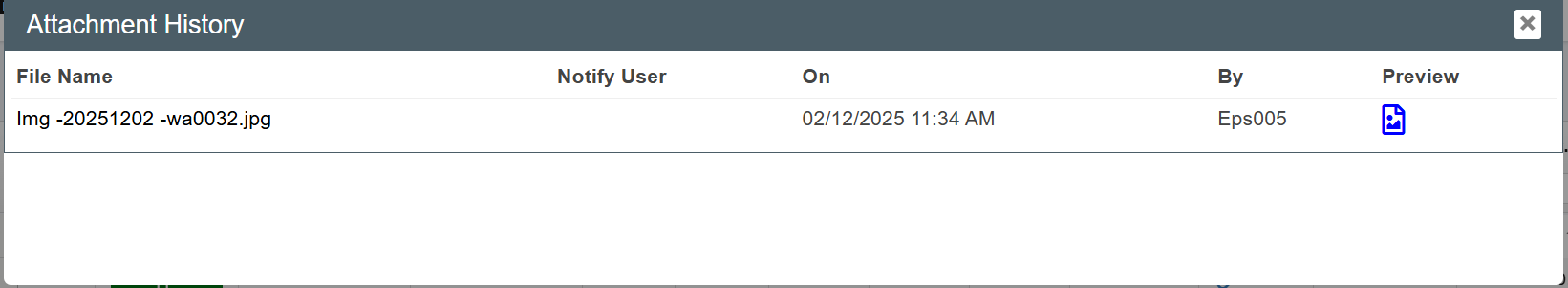 icon and system will display the attachment history window for user to preview the attachment.