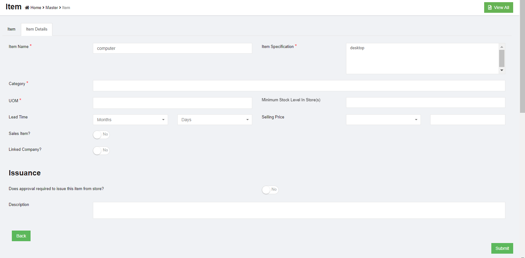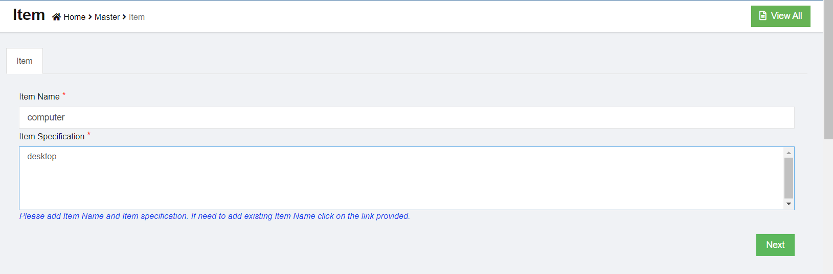 - There are two mandatory information to be filled up. For example, we want to buy a desktop computer. So we have decided classify Computer as item name and Desktop as item specification