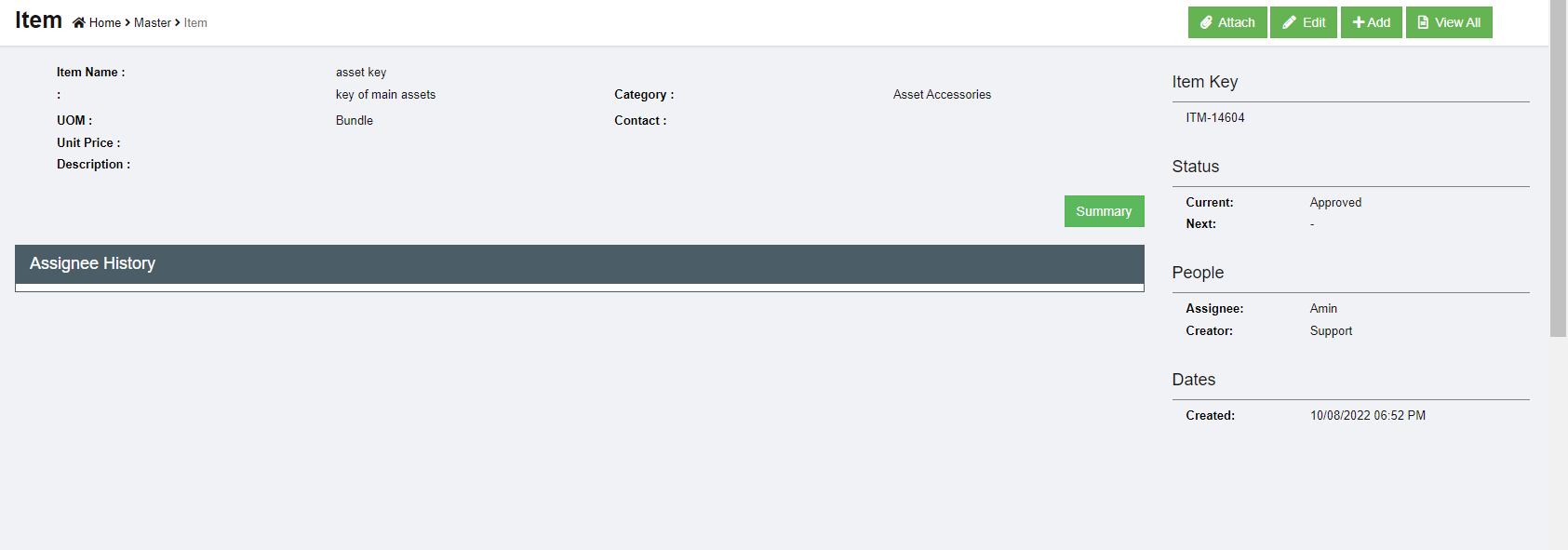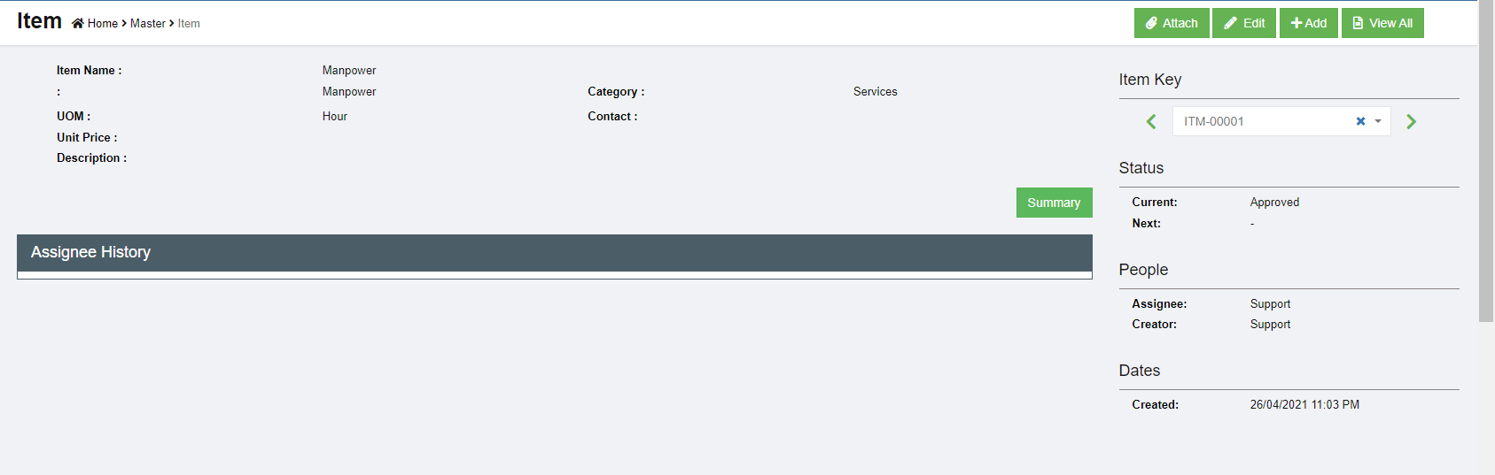- Click Confirm, item will be approved and appear in item list for system use. Page will be redirected to the below screen.