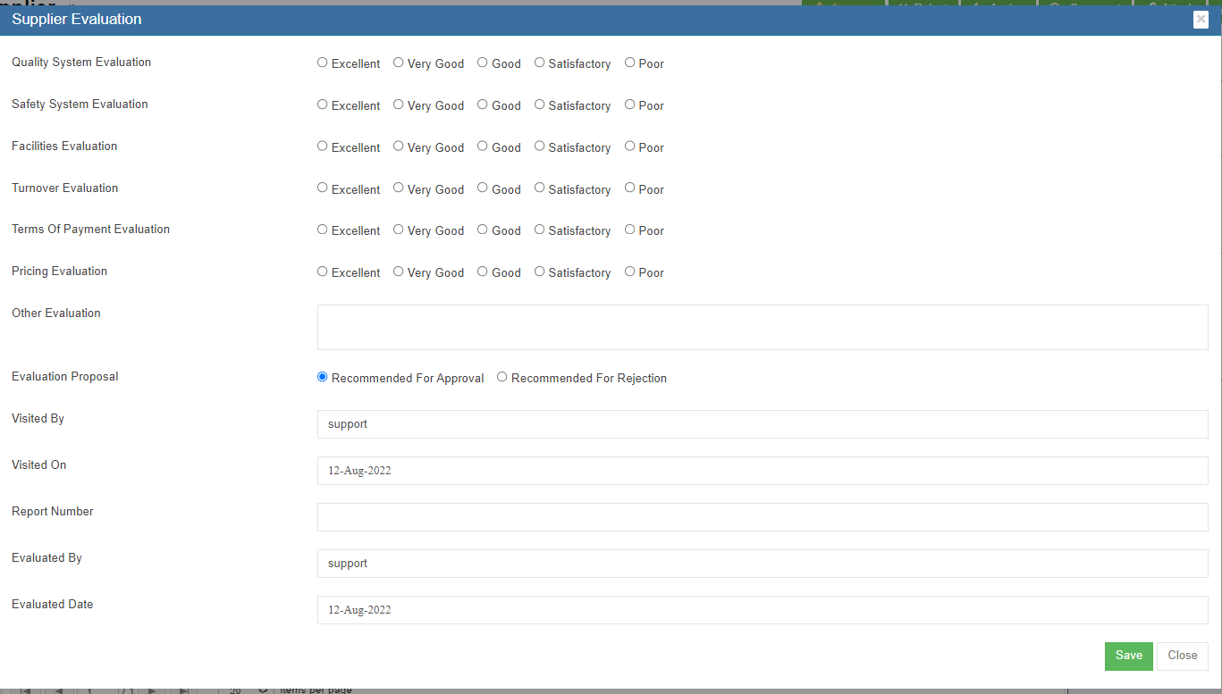 button, below evaluation window opens. Complete the evaluation and click Save.