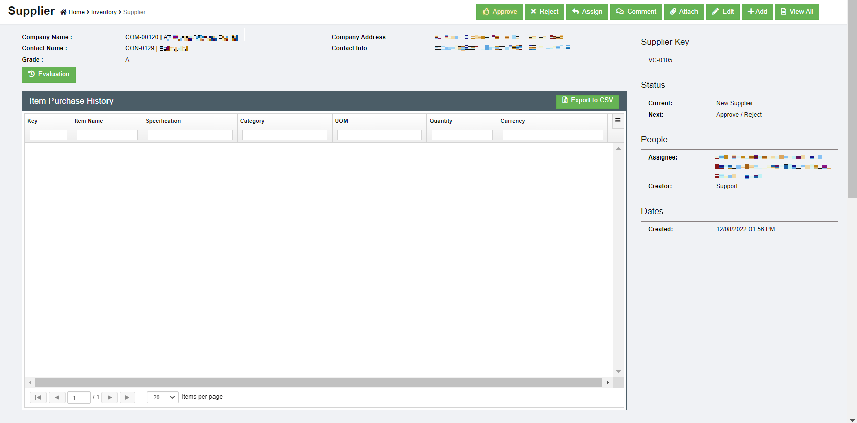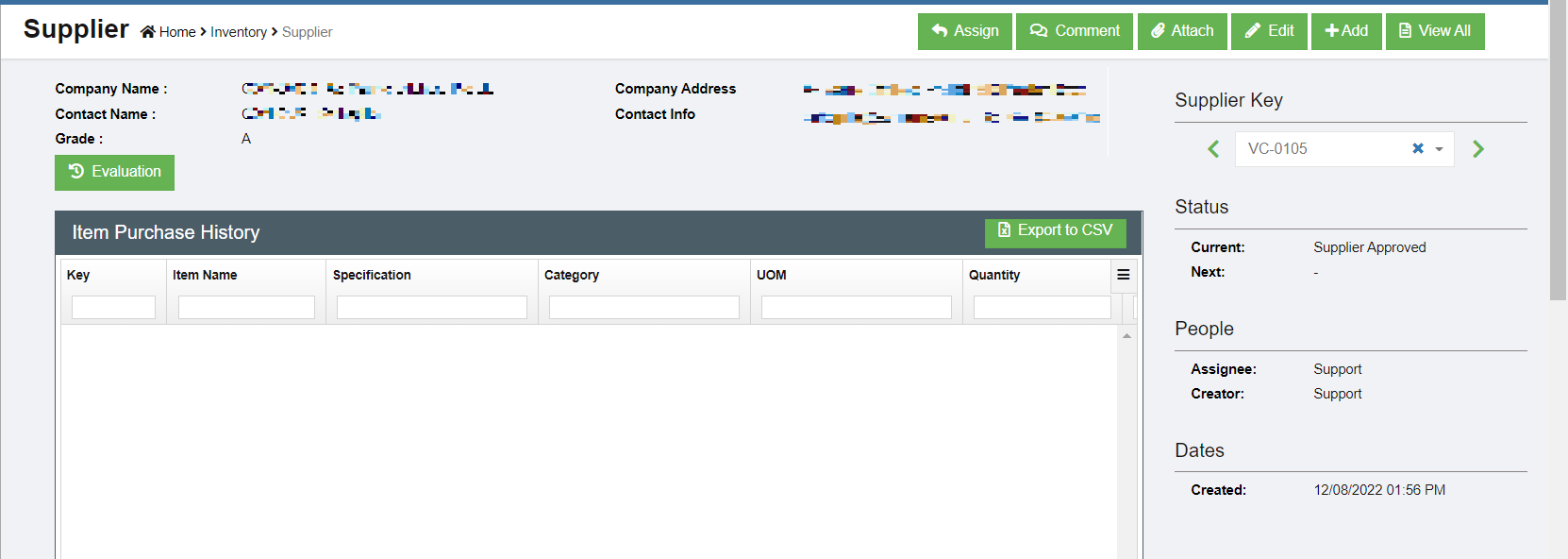 - Click Confirm, a new supplier is created and directed to below new supplier detail page,