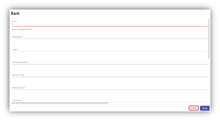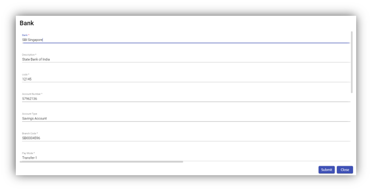 Note: The fields notified with a symbol (*) are mandatory. You must enter the relevant details in that fields before saving.