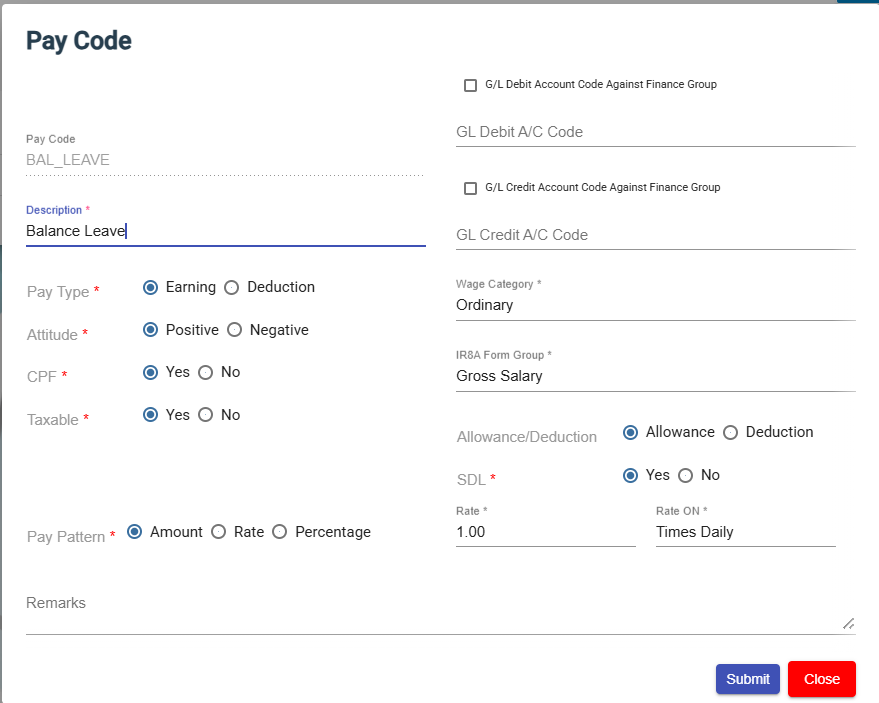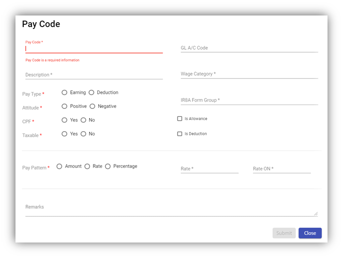 You can also create new pay codes by using this Pay Code feature. The added pay code will be used in the further payroll process.