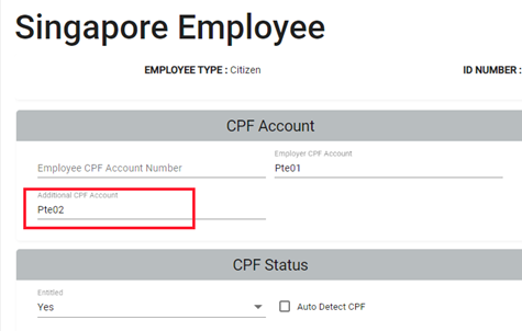 - In the CPF Account Name box, select the Pte01 or Pte02 from the drop-down list.