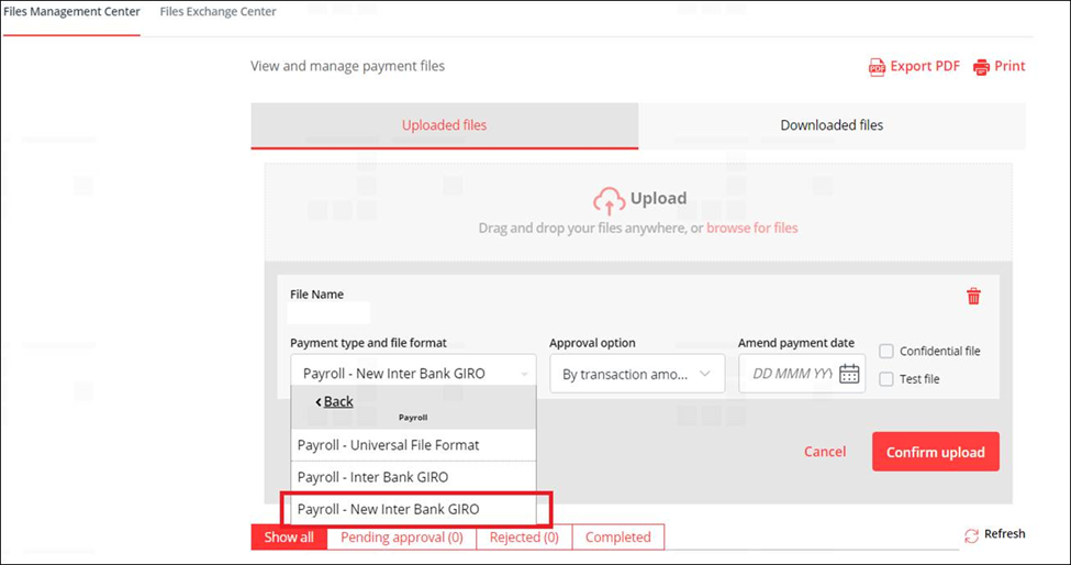 Note: For DBS bank, when uploading GIRO bank file, kindly ensure you have selected the correct format in IDEAL as “New Interbank Giro Format” in DBS file upload portal.