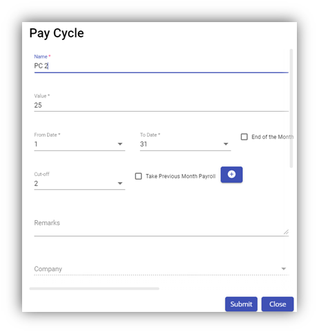 (Edit icon) of the respective pay cycle you have added. The Pay Cycle window opens with the added pay cycle details.