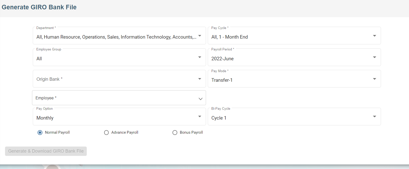 - Upload GIRO bank text file generated via payroll's GIRO Bank