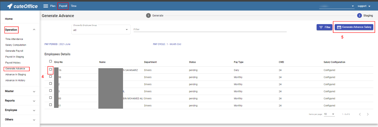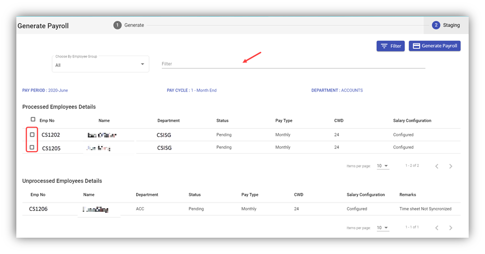 Note: If you want to take previous month payroll, select the checkbox of the Take Previous Month Payroll option.