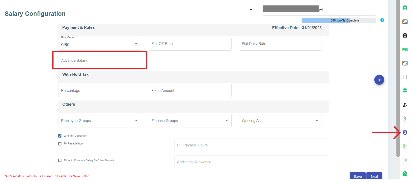 6. In the Central Provident Fund (CPF) field, if the employee is eligible for CPF this will attract the CPF, click Yes else click No.
