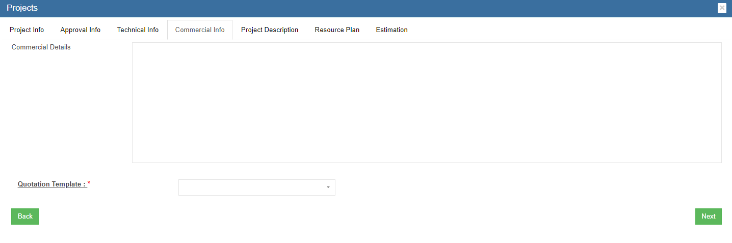In General Details section, the details will be automatically filled up from template if user choose to use template or copied from previous quotation. Or else, user can key in any details when needed.