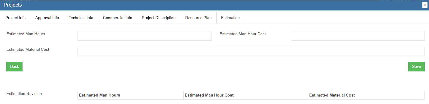 - In Estimated Man Hour Cost box, enter estimated cost.