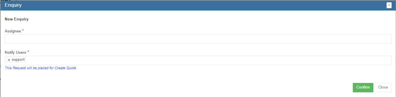 - Select Assignee and Notify Users, then click Confirm to create a new sales enquiry.