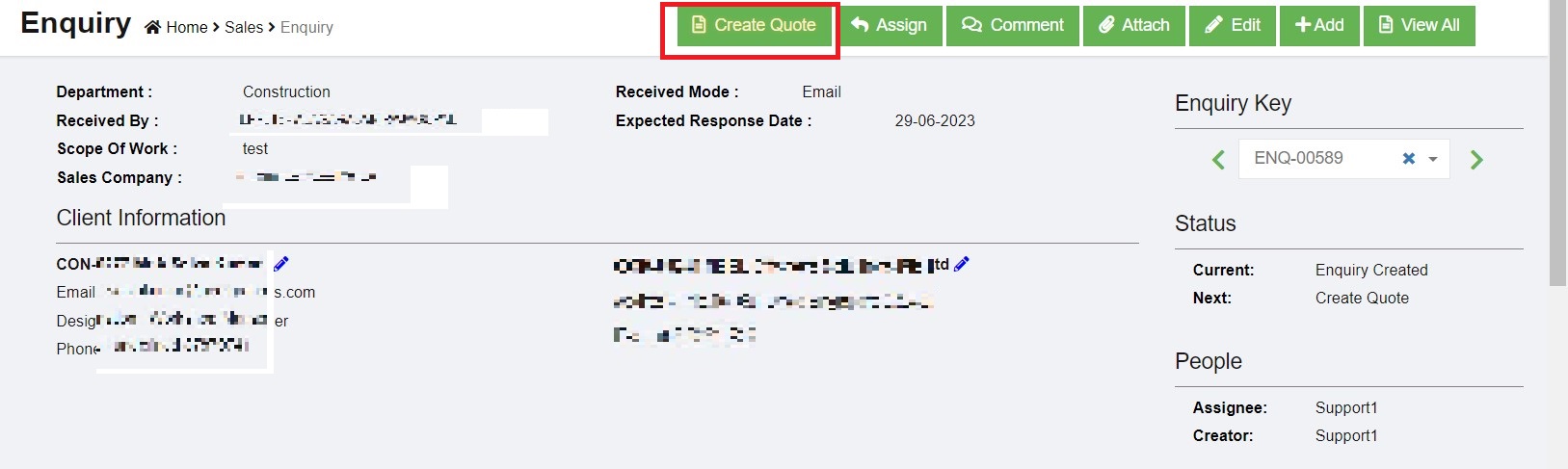 Once client agreed and confirmed quotation, user can create project against the enquiry. And the "Project Created" status will mark the completion of sales enquiry.