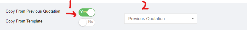 - To copy from previous quotation, enable 1 to Yes, and select the relevant previous quotation key/name, the previous quotation details will load, user can edit or update details where needed.