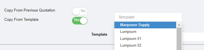 - In terms of quotation templates, user can copy from previous quotation or copy from templates.